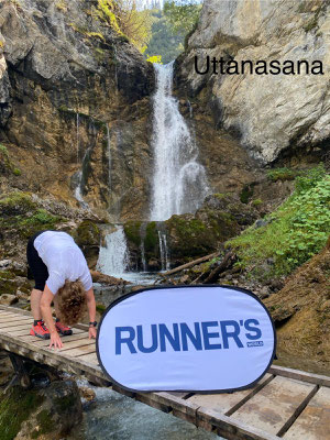 Nach einem stärkenden Frühstück und ein wenig Gymnastik geht es auf die zweite Etappe, die heute zwar bis Kilometer 18 immer wieder sanft bergauf führt, dafür aber auf breiten Forstwegen zum entspannten Laufen einlädt. Denn das haben wir Läufer den Wanderern voraus: Die eher langweiligen Passagen bringen wir im Laufschritt flott hinter uns, um die schönen Blicke und tollen Trails dafür umso länger genießen zu können. Genuss pur bietet der technische Downhill nach Forbach runter. Angekommen im Murgtal herrscht Urlaubsfeeling vom Feinsten.