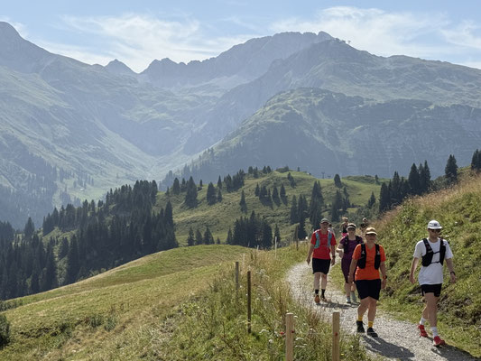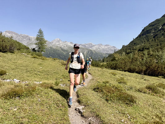 Morgens vor dem Frühstück dürfen alle Frühaufsteher den Tag auf dem Vita-Parcour mit Sonjas HELL&WACH beginnen und in der Regel brechen wir täglich um 10:00 Uhr zum täglichen Highlight auf: Ob wir den Spullersee umrunden oder die Quelle des Lechs am Formarinsee suchen, über den Auenfeldsattel zum Körbersee laufen oder das Kriegerhorn erobern, alle Touren können dank der Lech-Card auch mit Bussen oder Bahnen abgekürzt werden und so schaffen wir es wirklich Jahr für Jahr, dass alle Teilnehmenden unterschiedlichen Niveaus gesund und glücklich durch die Woche kommen. Nachmittags wird gekräftigt, gedehnt oder entspannt und vor dem kulinarisch extrem hochwertigen Abendessen findet immer eine kleine Theoriestunde zum Beispiel zu den Themen "Ernährung", "Training" oder sehr naheliegend "Trailrunning" statt.