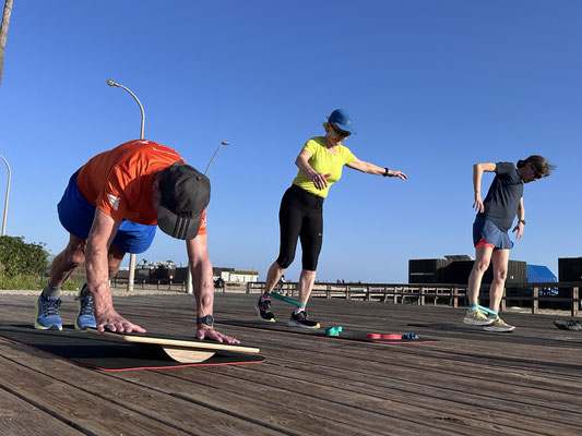 Nachmittags: Ergänzende Einheiten wie Zirkeltraining am Strand, Stretching mit Yoga-Elementen oder Stabi-Training für die starke Mitte.