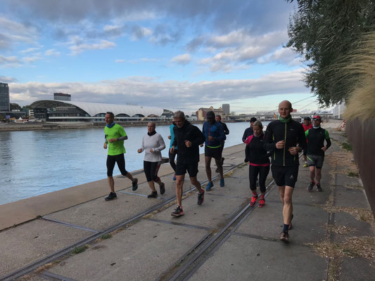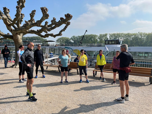 Die tägliche Laufeinheit ist das eine, das ganze Drumherum das andere, was so eine Campwoche erst richtig ausmacht. Niemand muss, aber alle dürfen: Jeden Morgen begrüßen wir den Tag im Sonnenaufgang mit HELL & WACH, ein paar wohltuenden Mobilisations- und Atemübungen vor dem Frühstück. Am Nachmittag findet täglich eine Gymnastikeinheit statt. Je nach Belastungstag kann das ein schweißtreibendes Zirkeltraining oder eine entspannende Stretching-Session sein. In den lichtdurchfluteten Meeting-Räumen können wir uns all die Zeit für ein bisschen Alternativtraining nehmen, die wir im Alltag oft so nicht haben. Vor dem Abendessen halten wir kurze Vorträge zu Themen wie Trainingssystematik, Ernährung und mentale Motivation. Außerdem möchten wir uns die Zeit nehmen, viele persönliche Gespräche zu führen, den Sinn des Laufens rauf und runter zu diskutieren und gerne auch einen individuellen Trainingsplan für die Zukunft mit an die Hand zu geben. Denn vielleicht ist die Osterwoche am Rhein ja der Startschuss in deine beste Laufsaison ever und da möchten wir natürlich dran beteiligt sein!