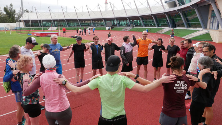 Vormittags: Abwechslungsreiche Trainingseinheiten in verschiedenen Leistungsgruppen – von Dauerläufen über Tempotrainings im Stadion bis zum langen Lauf durchs Naturschutzgebiet. Höhepunkt: der traditionelle 5-Kilometer-Lauf auf der legendären Pinienwaldrunde.